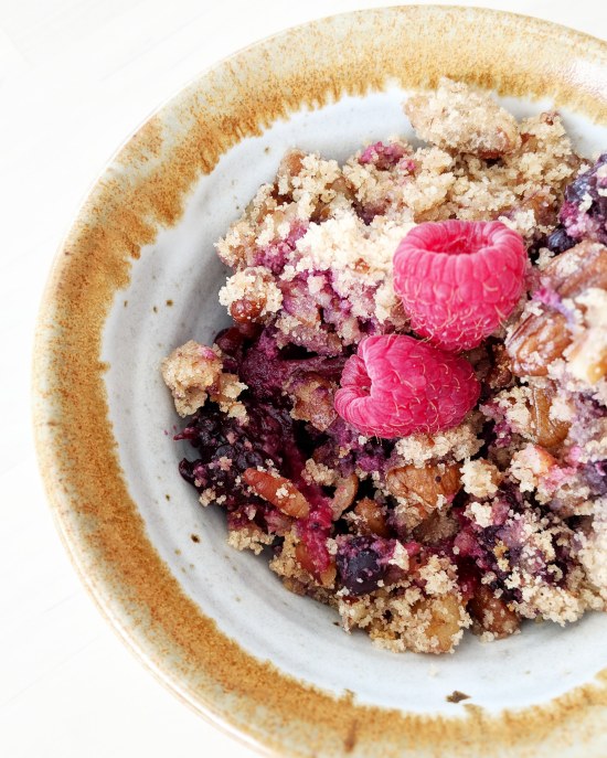 This berry crumble screams both summer and autumn – my two favorite seasons. The combination of warm and toasty roasted pecan, almond, and spiced crumble topping with the juicy and bright summer berries makes the perfect segue from summer to fall. Naturally sweet berries and salty spiced topping is another reason why this sweet & […]